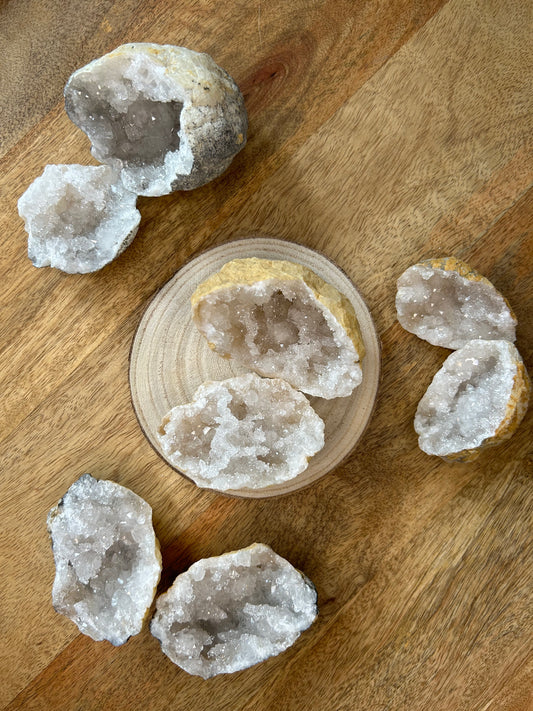 Cluster und Stufen sind natürliche Kristallformationen, bei denen mehrere Kristalle auf einer gemeinsamen Basis wachsen – beeindruckende Energiespender und einzigartige Schmuckstücke für Dein Zuhause.