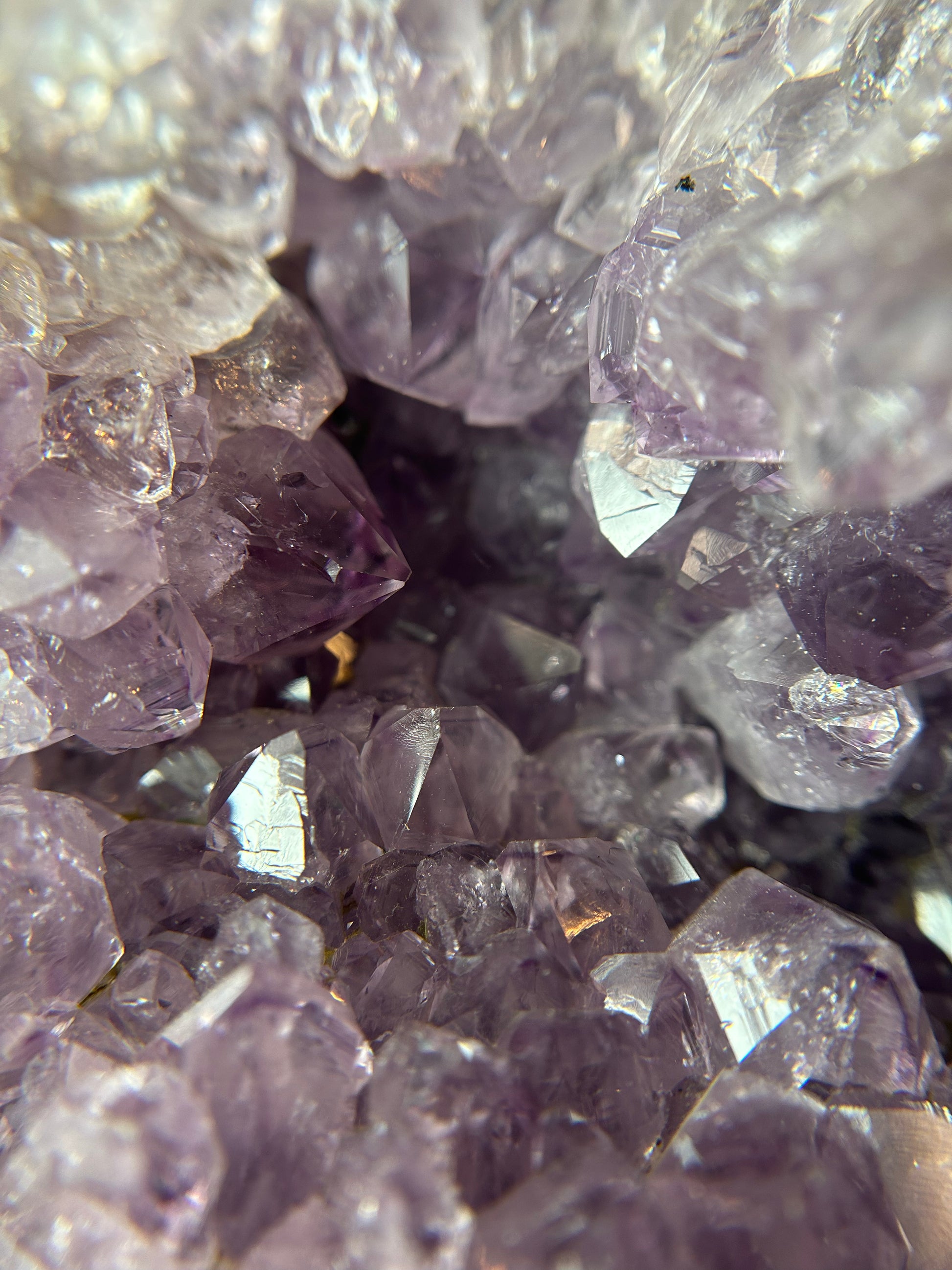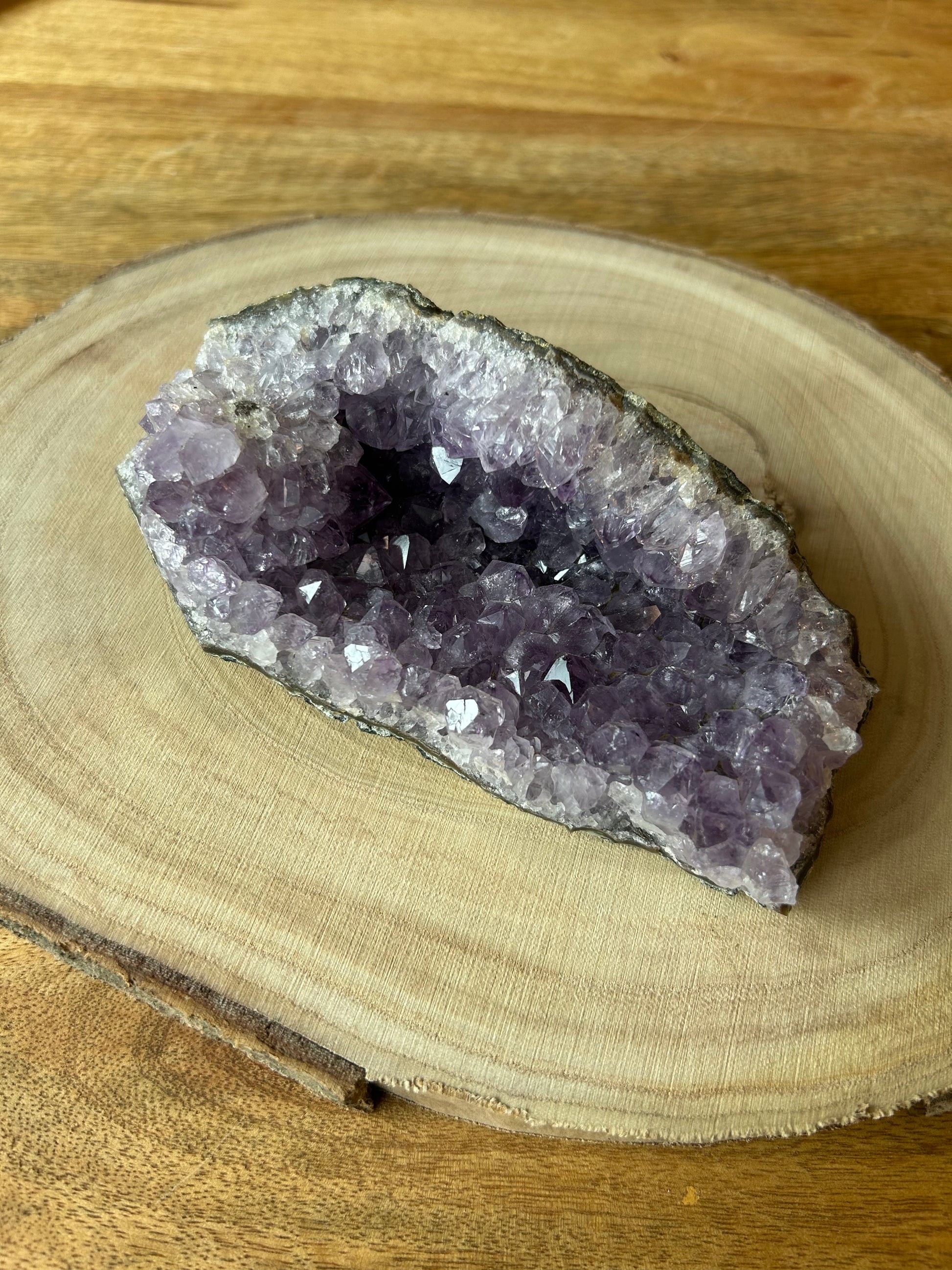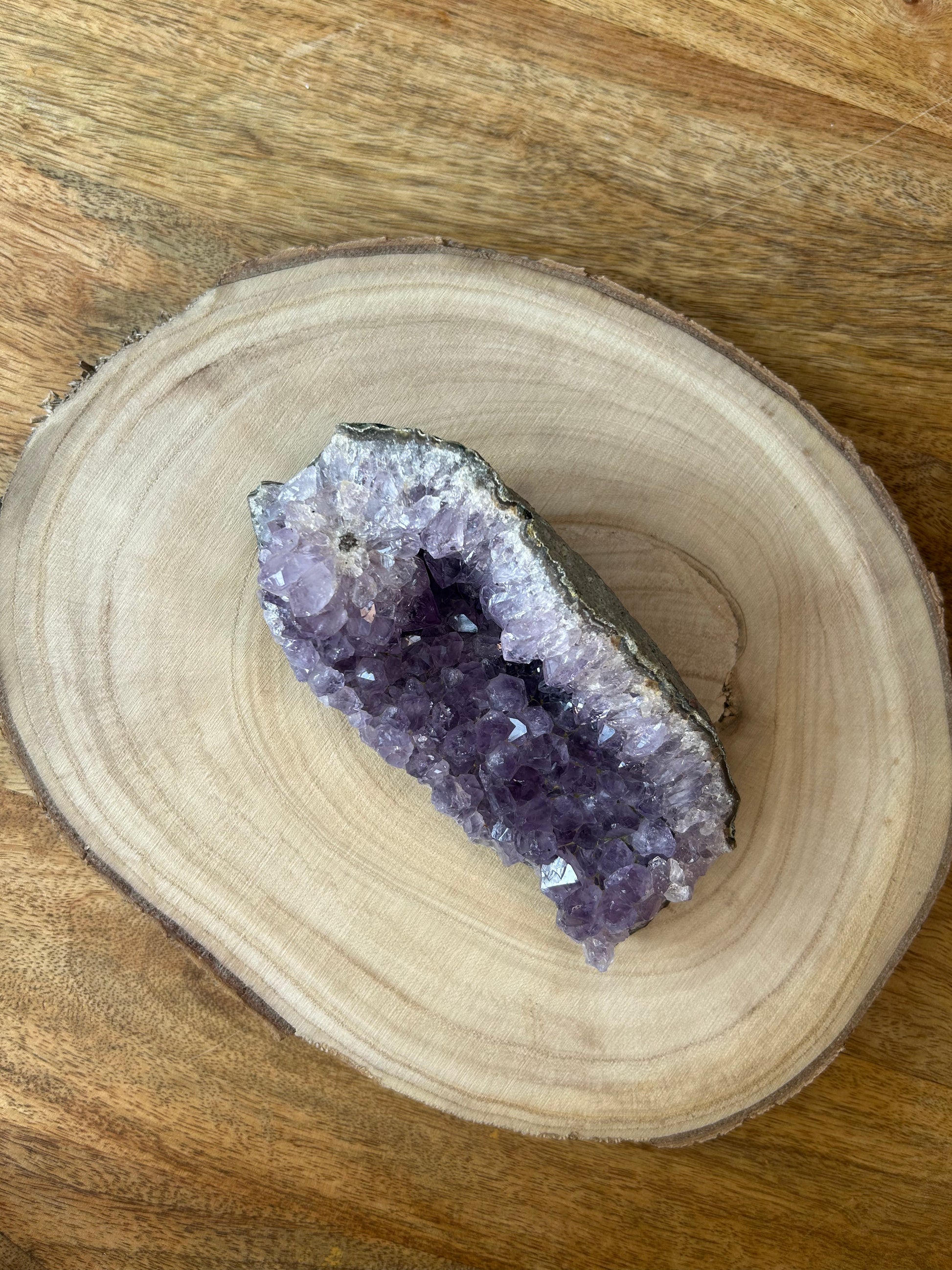 Der Amethyst kann besonders in Zeiten von Stress und innerer Unruhe Unterstützung bieten. Er wirkt wie ein sanfter Schutzschild gegen belastende Energien und hilft dabei, Ängste zu lindern und innere Spannungen loszulassen.