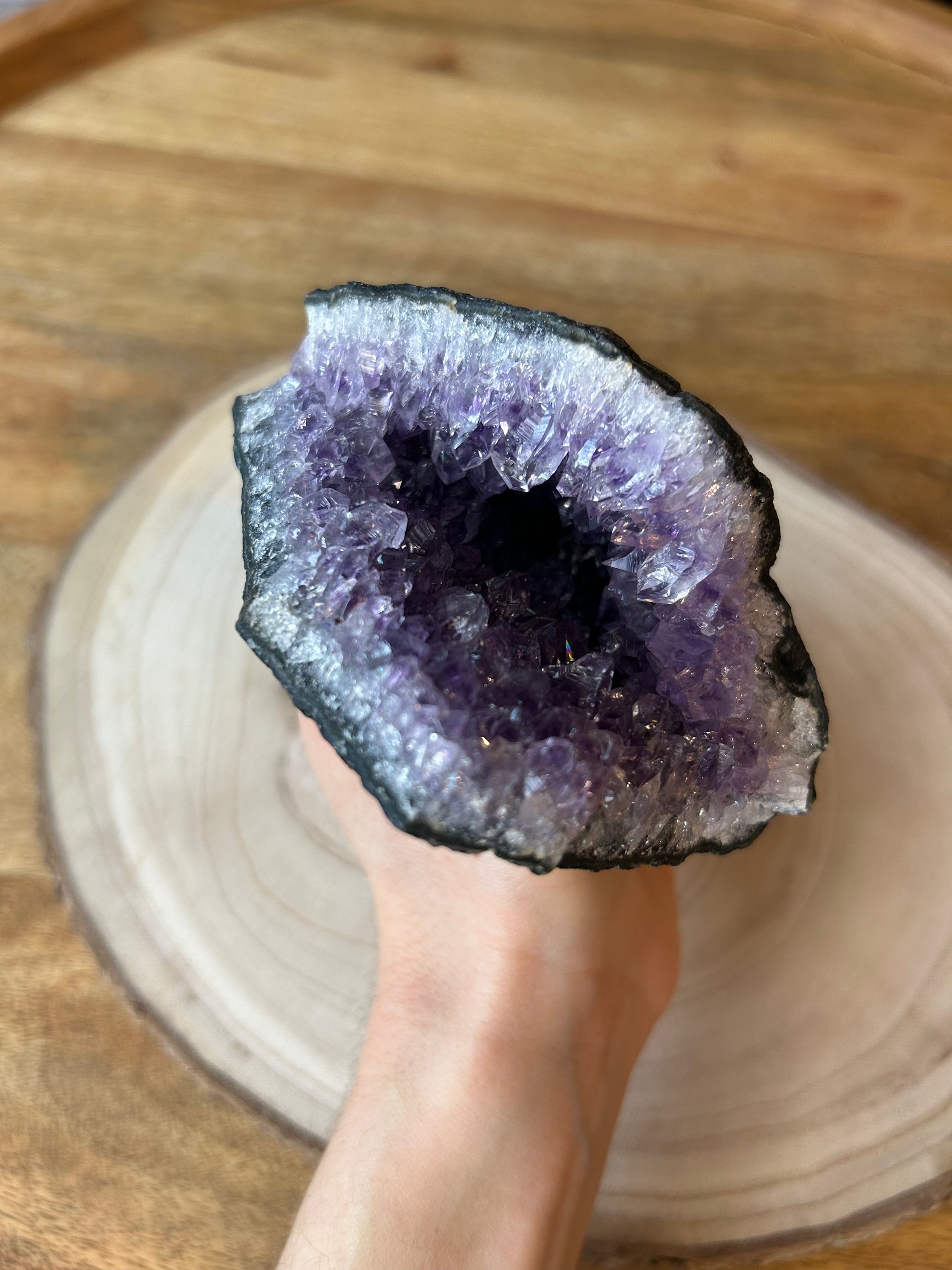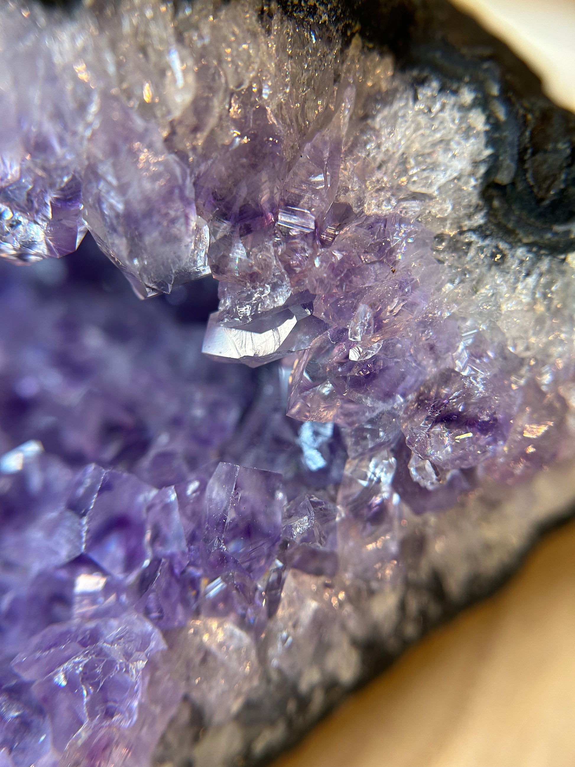 Der Amethyst kann besonders in Zeiten von Stress und innerer Unruhe Unterstützung bieten. Er wirkt wie ein sanfter Schutzschild gegen belastende Energien und hilft dabei, Ängste zu lindern und innere Spannungen loszulassen.