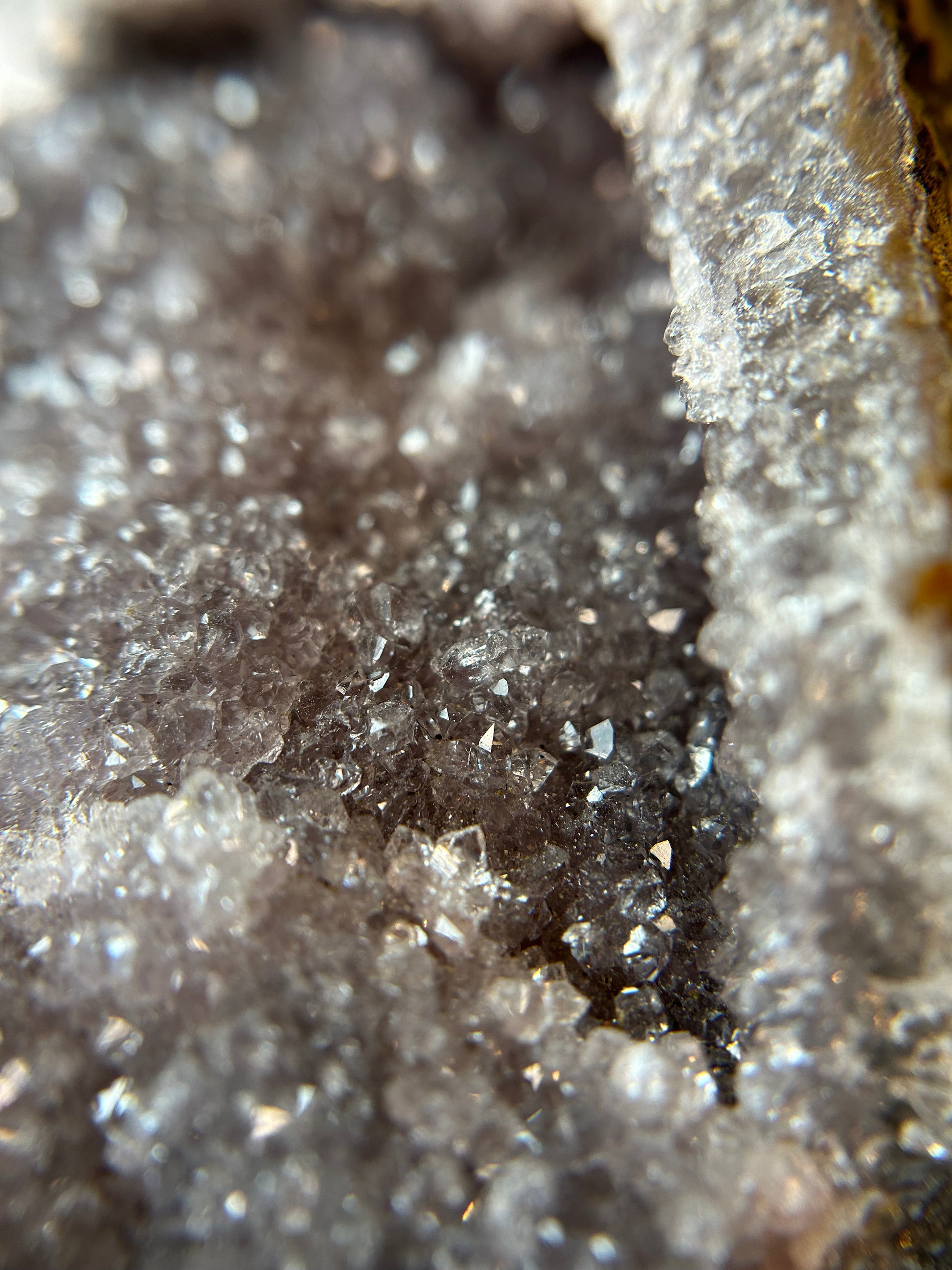 Diese Amethyst-Stufe hat ganz viele Mini-Spitzen in einem hellen Grauton.