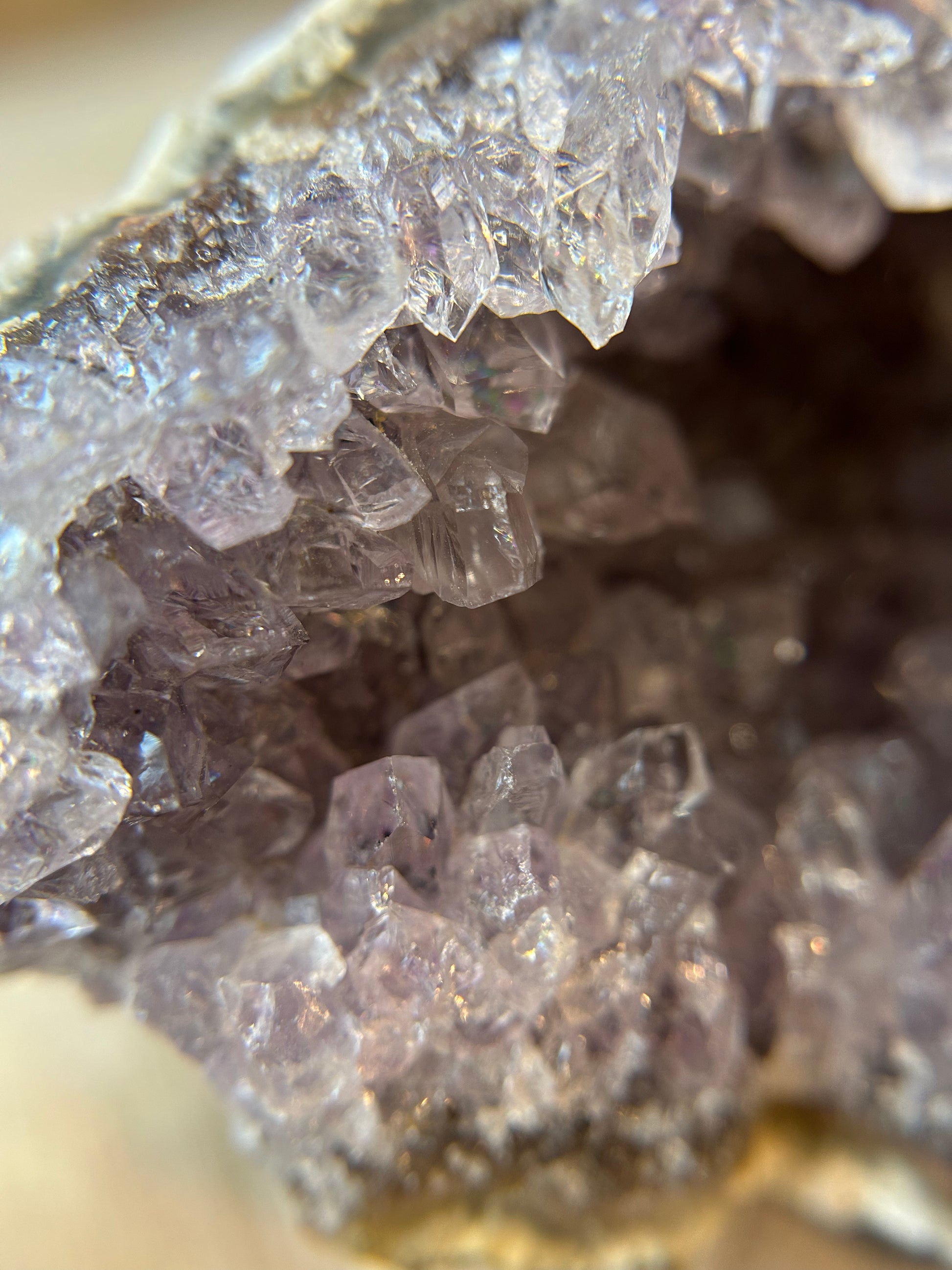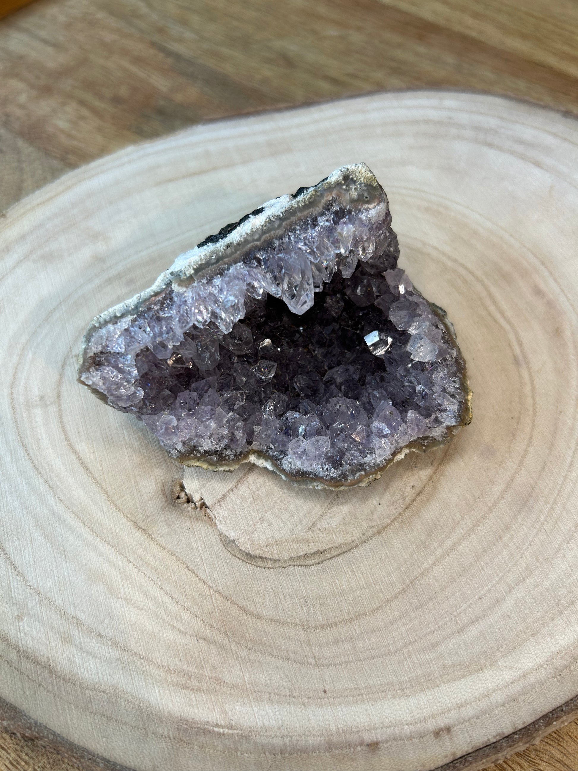 Diese Amethyst-Stufe hat besonders schöne, klare Spitzen in einem hellen Grau.