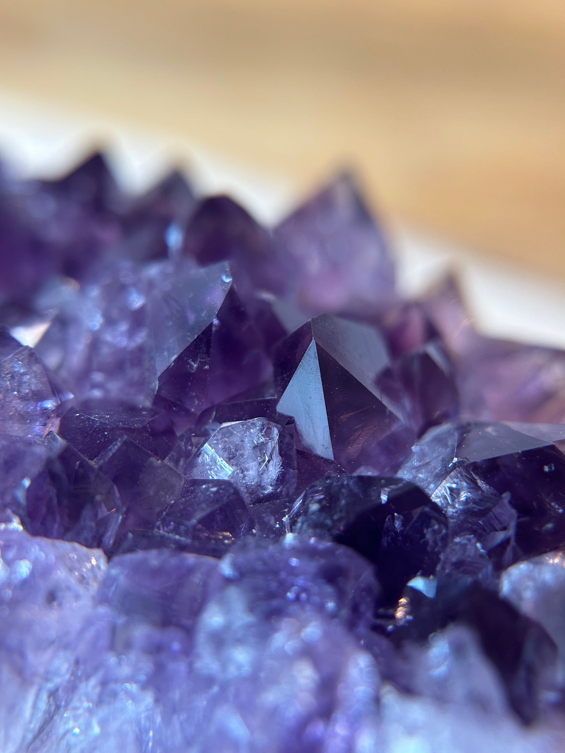 Der Amethyst kann besonders in Zeiten von Stress und innerer Unruhe Unterstützung bieten. Er wirkt wie ein sanfter Schutzschild gegen belastende Energien und hilft dabei, Ängste zu lindern und innere Spannungen loszulassen.