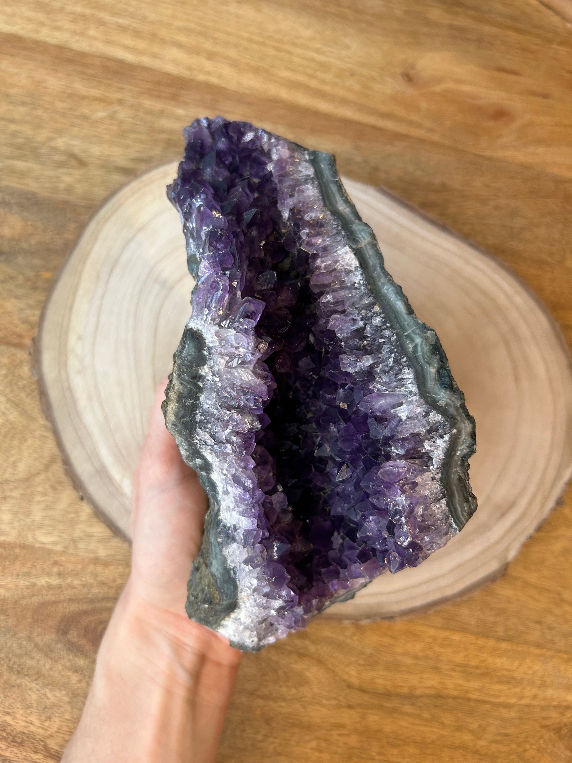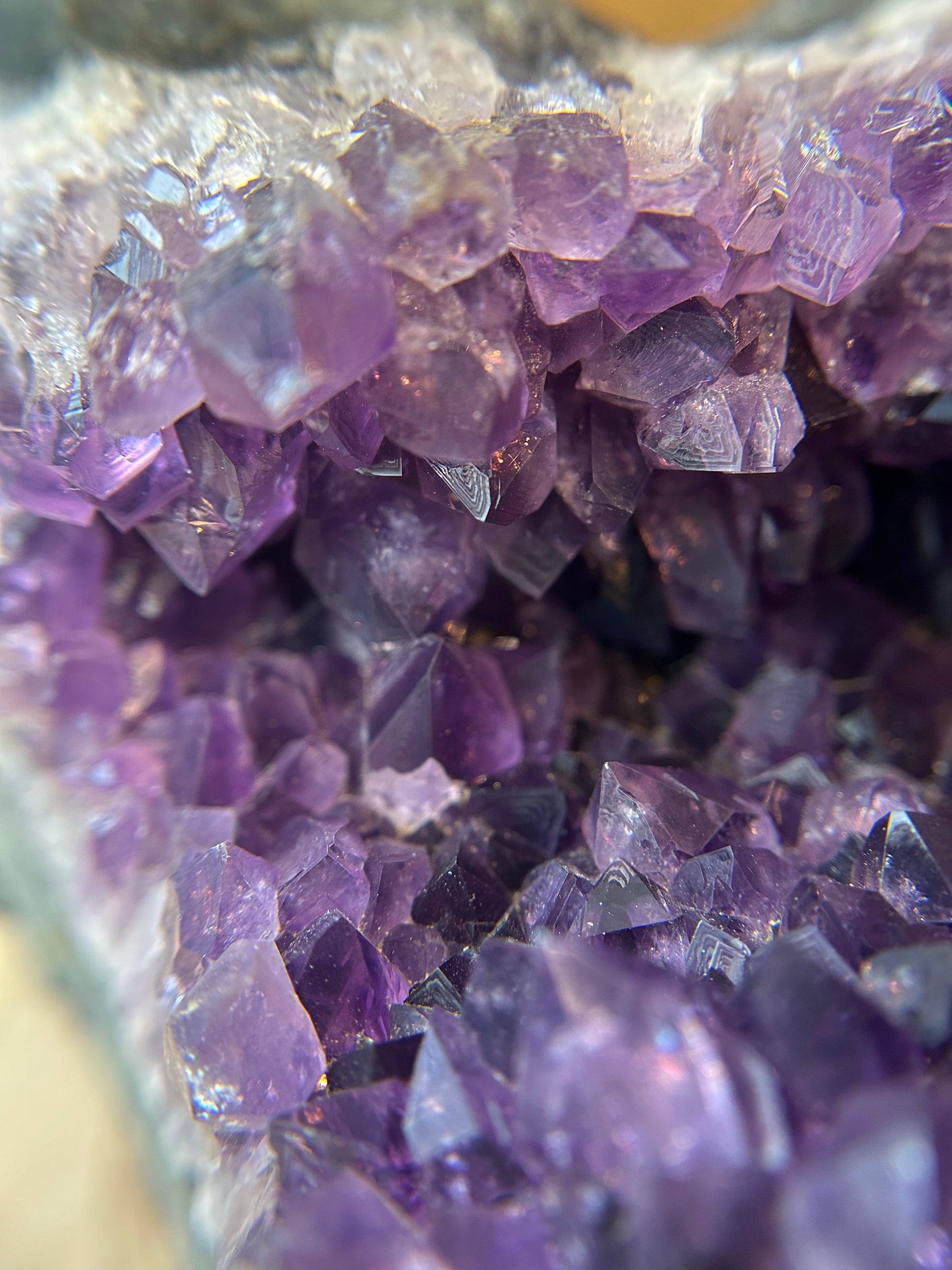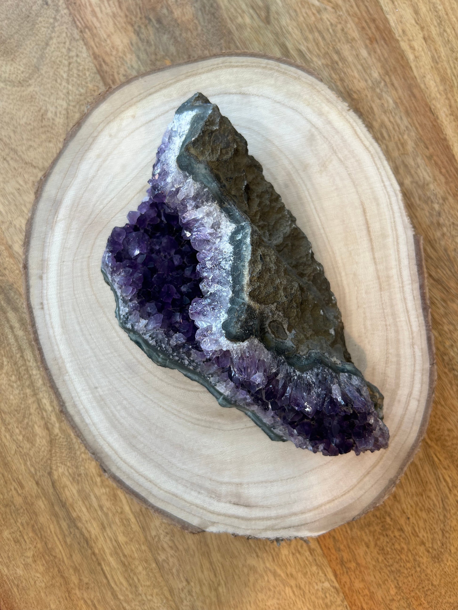 Diese Amethyst-Stufe hat einen tiefen lila Farbton.