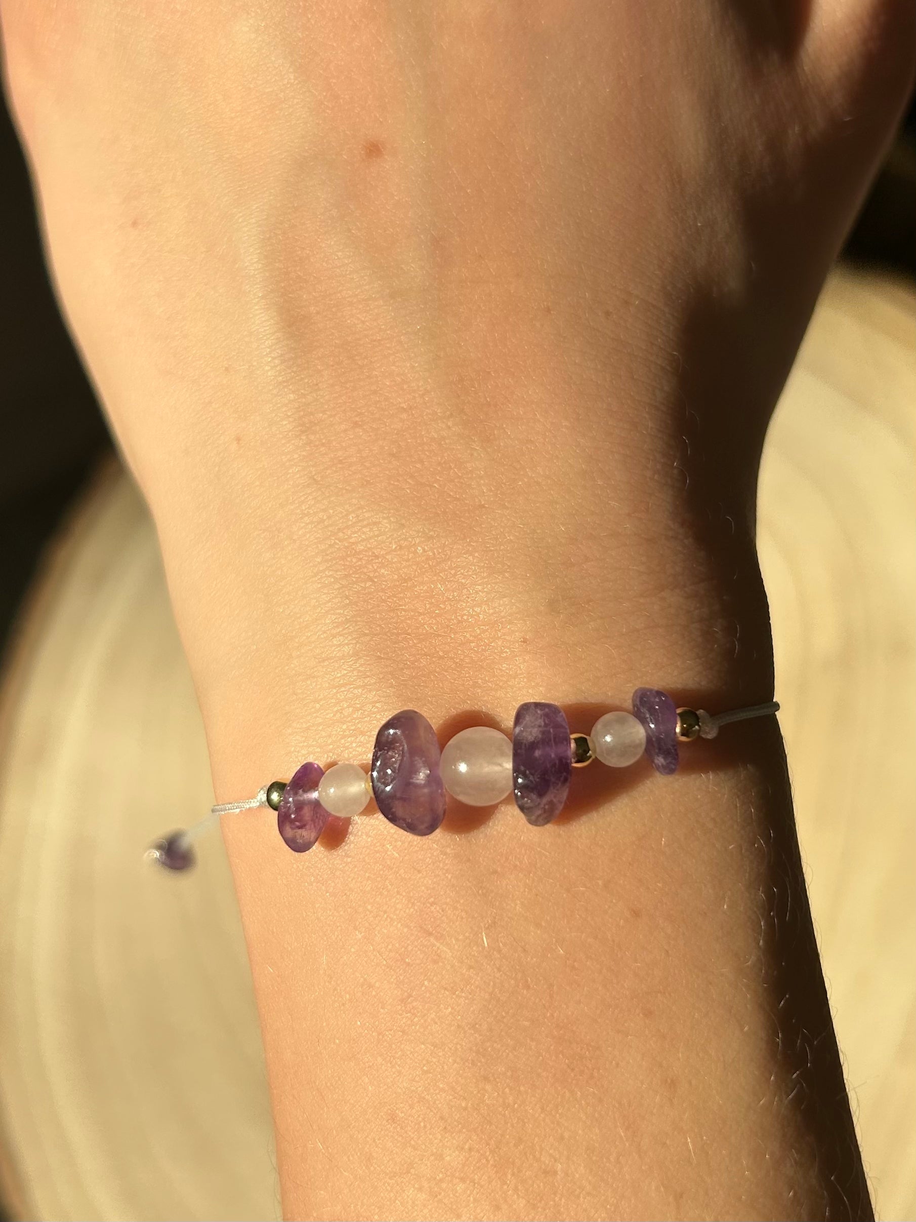 Das DEEP LOVE Armband vereint die Liebe und Sanftheit des Rosenquarzes mit der klärenden Ruhe des Amethysts. Rosenquarz öffnet das Herz, fördert Selbstliebe und Heilung, während Amethyst geistige Klarheit schenkt und vor negativen Energien schützt. Zusammen bringen sie Harmonie, emotionale Balance und Schutz in Deinen Alltag.