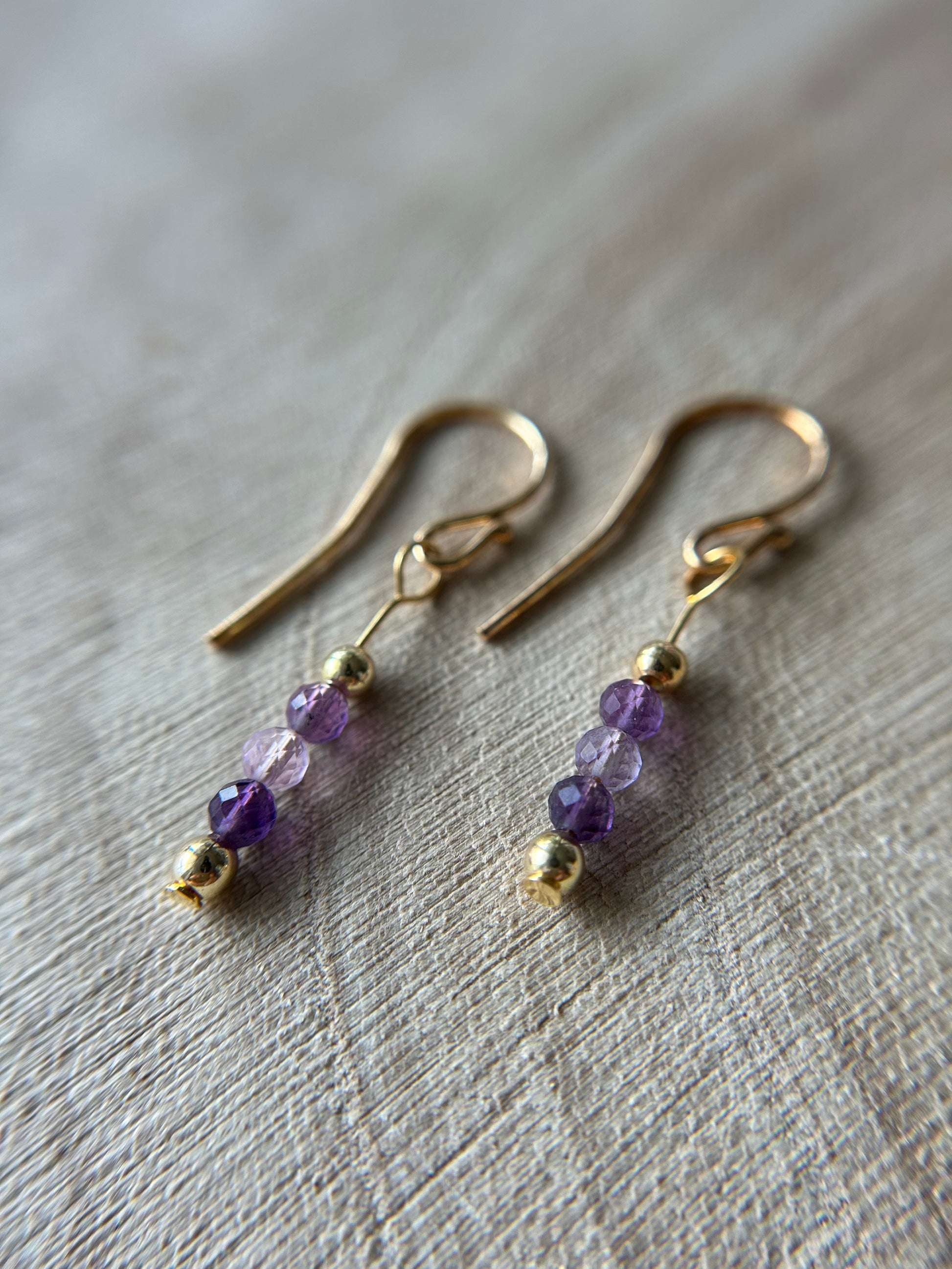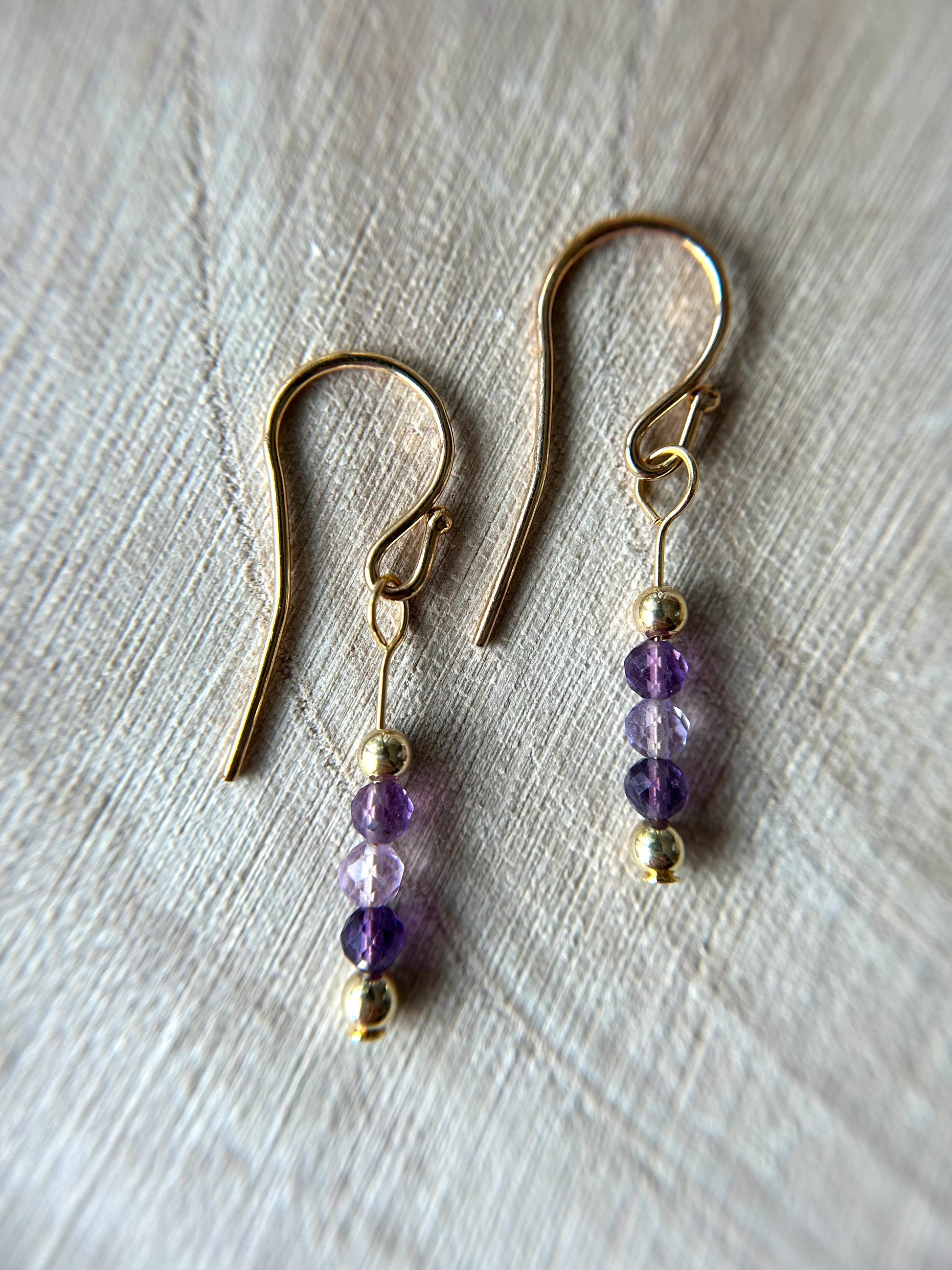 Material: facettierte Fluoritperlen (3 mm), zwei Perlen aus 925er Silber oder 925er Silber vergoldet, Ohrhaken aus 925er Silber oder 925er Silber vergoldet