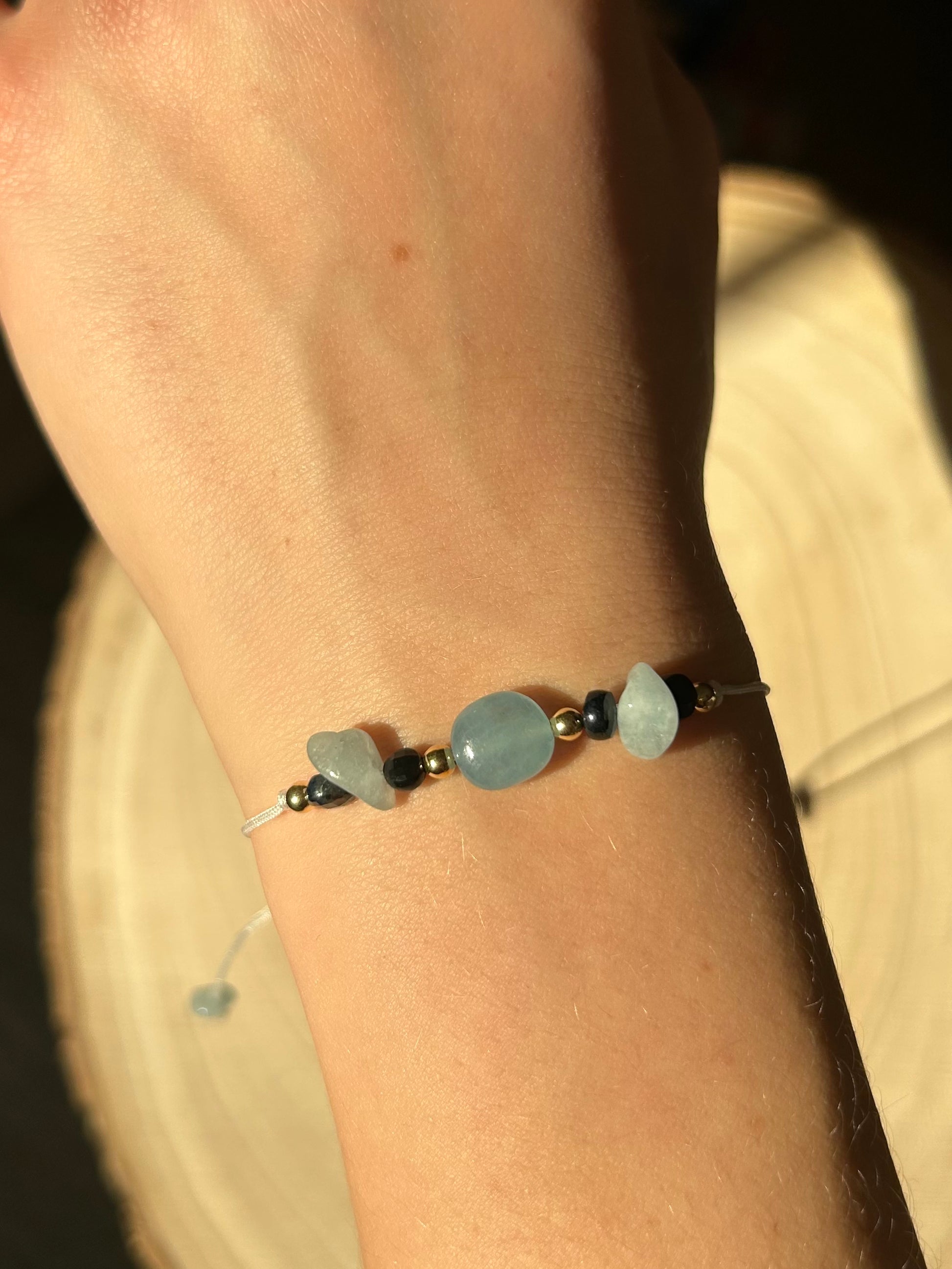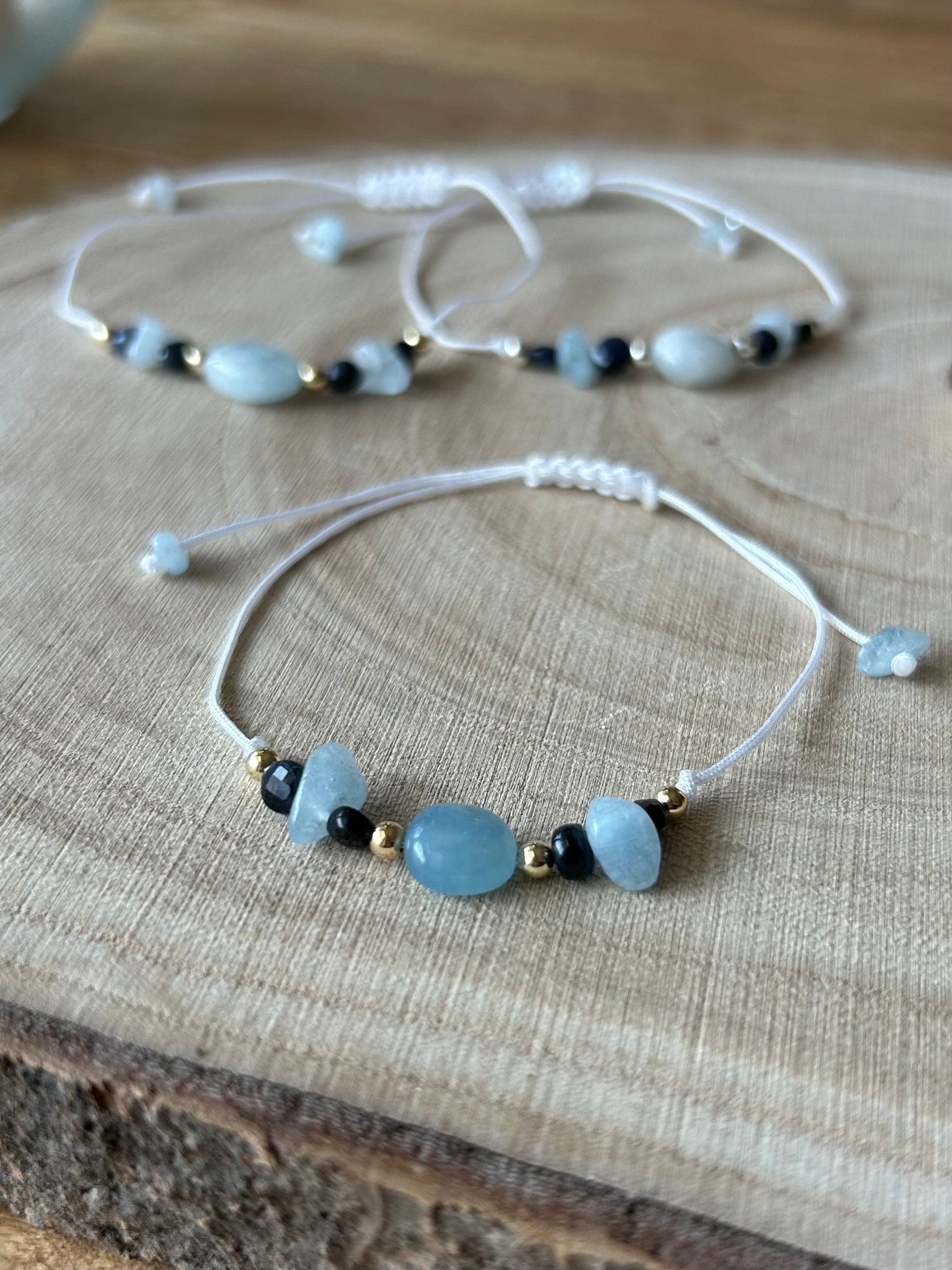 Aquamarin und Dumortierit sind eine ideale Kombination für Klarheit und innere Stabilität. Der sanfte, blaue Aquamarin wirkt beruhigend, stärkt das Selbstbewusstsein und fördert klare Kommunikation. Dumortierit hingegen verleiht innere Stärke, stärkt die Konzentration und unterstützt Dich dabei, Stress gelassen zu meistern. Zusammen schaffen diese Steine Ruhe und Selbstsicherheit, Klarheit und Entschlossenheit.