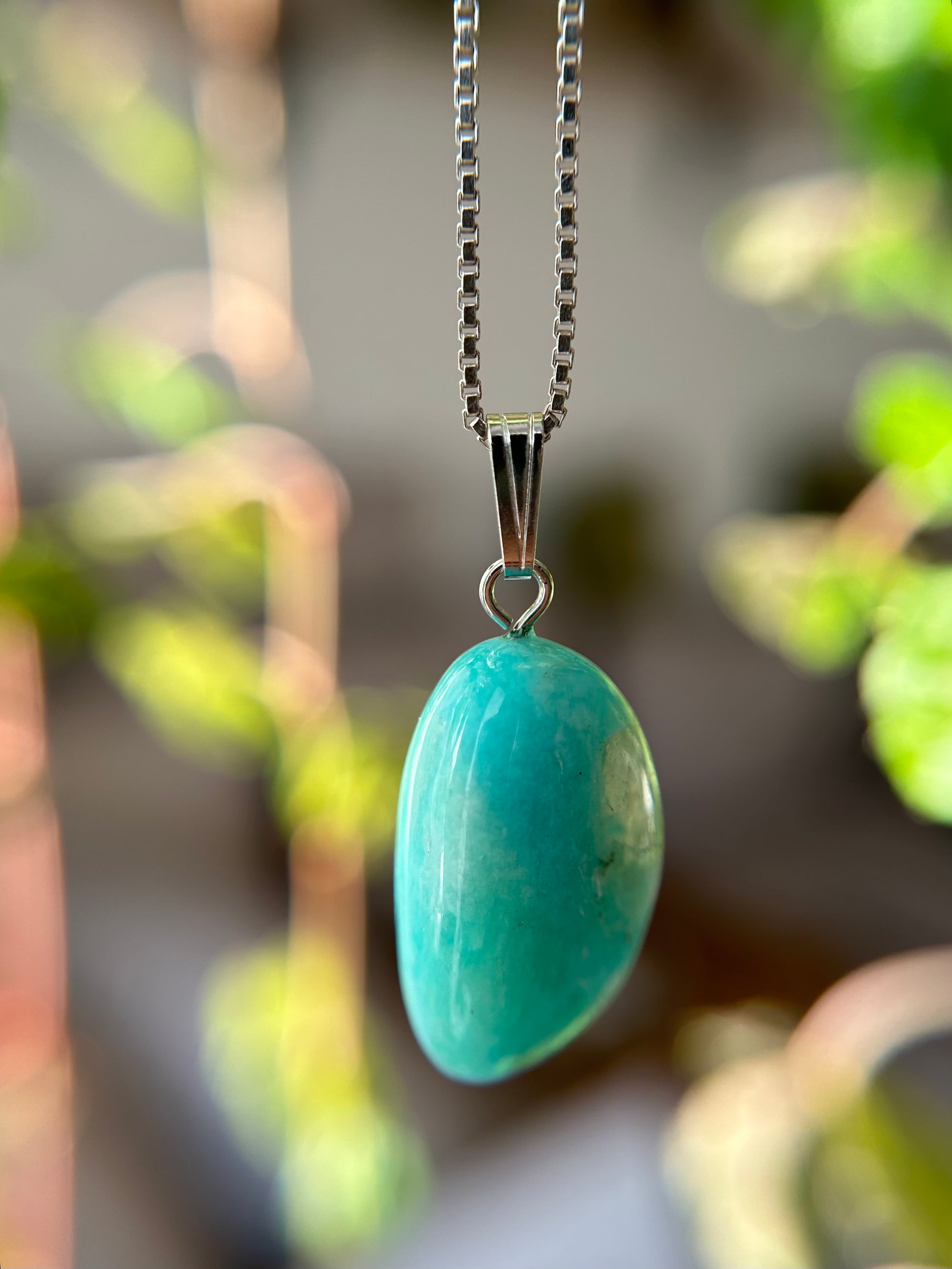 Der Amazonit wirkt beruhigend und harmonisierend. Er fördert das emotionale Gleichgewicht und hilft, innere Konflikte zu lösen. Oft als „Stein der Hoffnung“ bezeichnet, unterstützt er dabei, die Kommunikation zu verbessern und das Selbstvertrauen zu stärken. Amazonit wirkt auch positiv auf das spirituelle Wachstum und sorgt für eine tiefere Verbindung zu Dir selbst und Deiner Umgebung.