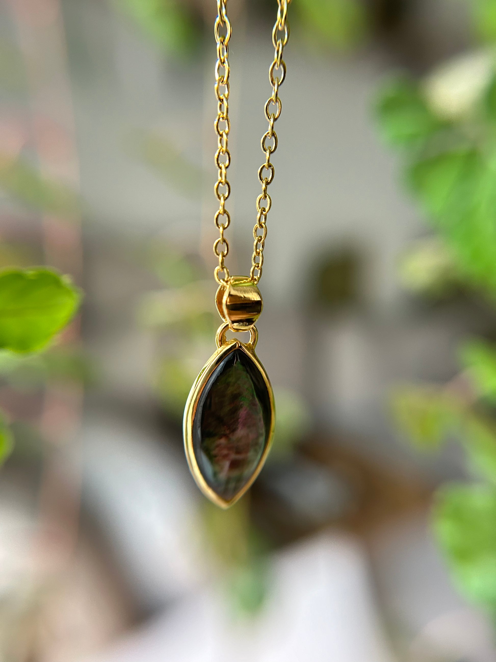 Du erhältst einen intuitiv ausgewählten Anhänger mit einer vergoldeten Öse aus 925er Silber. Trage ihn an einer Kette Deiner Wahl für mehr Gelassenheit und Schutz im Alltag.