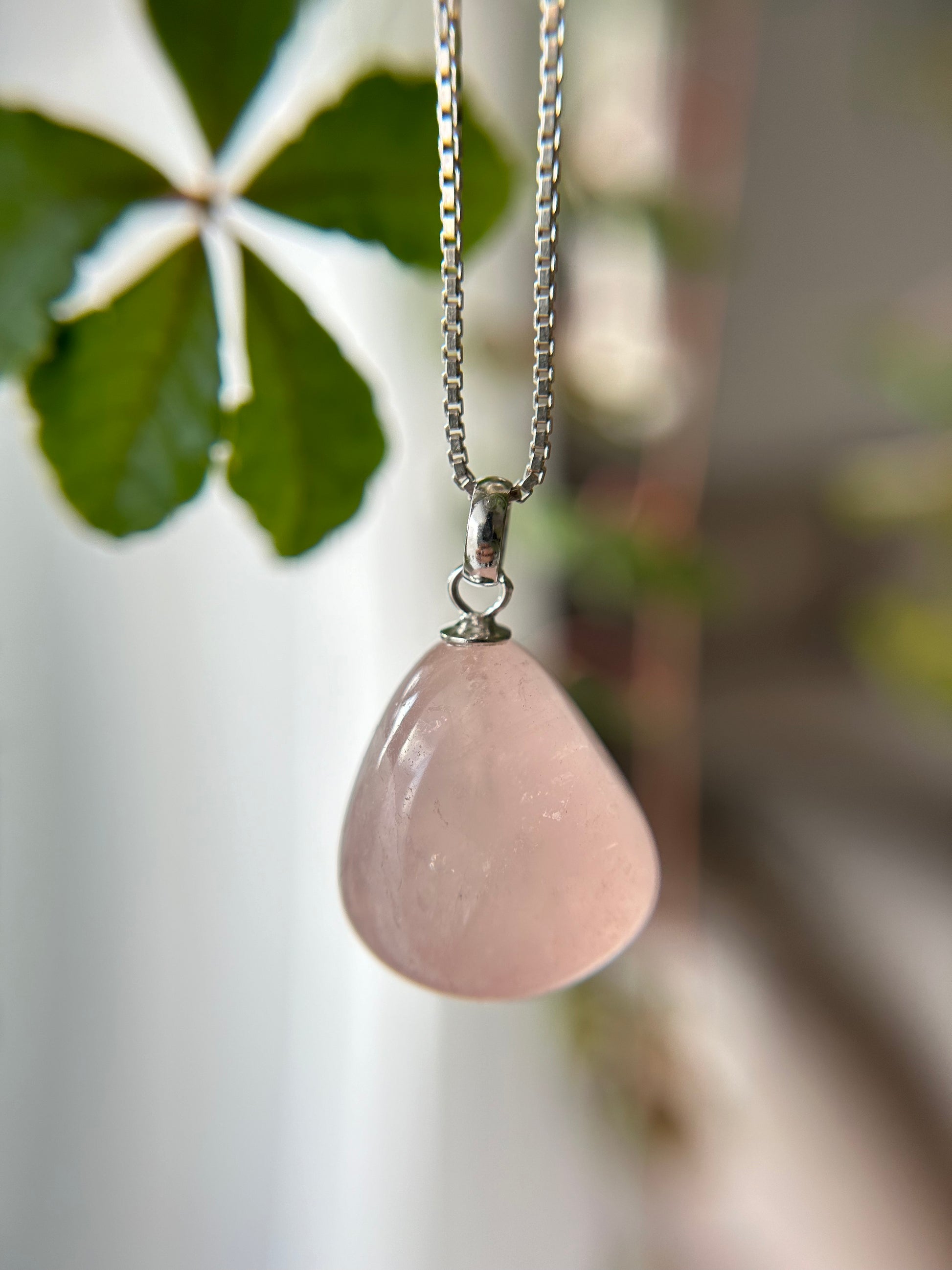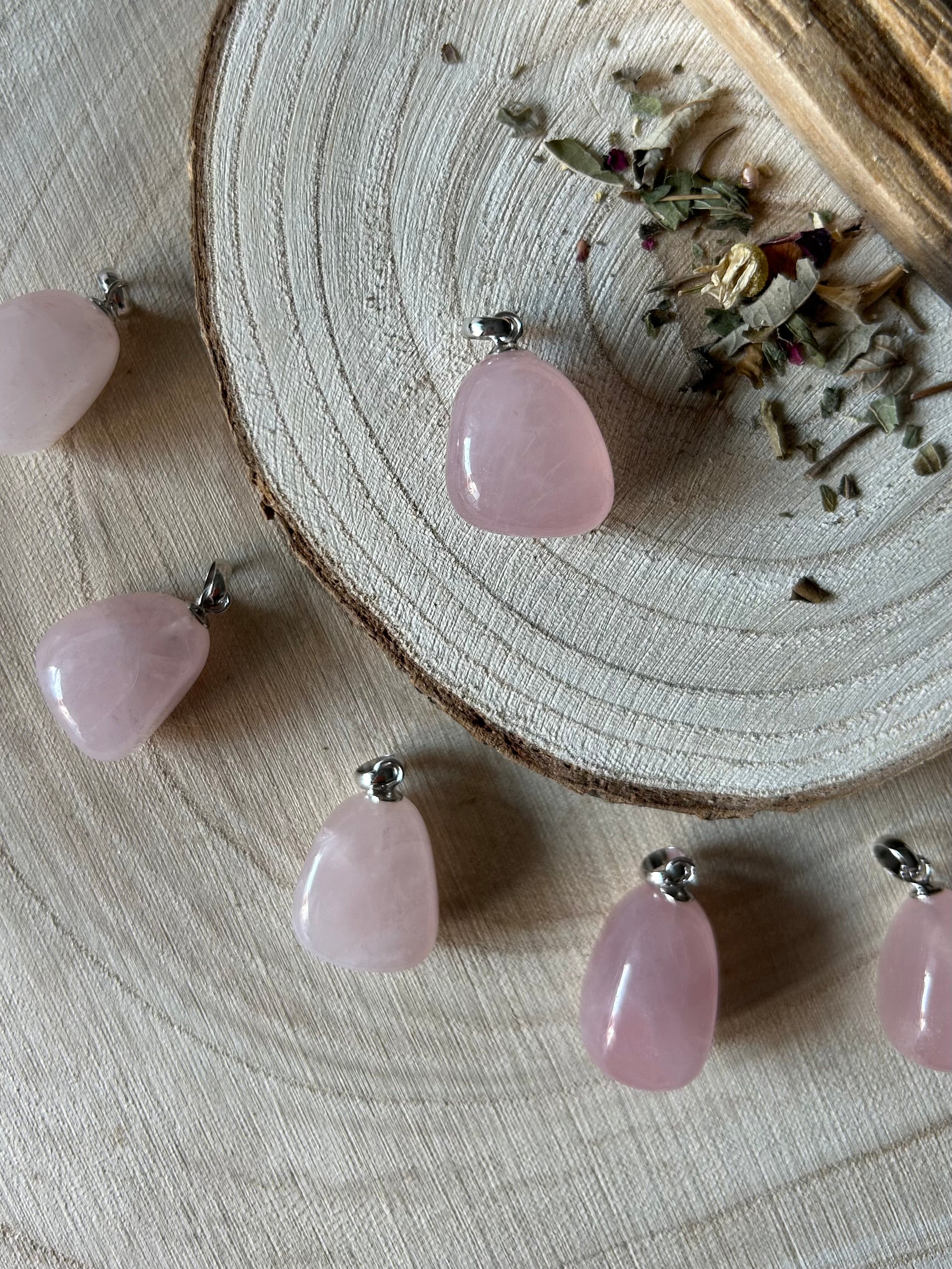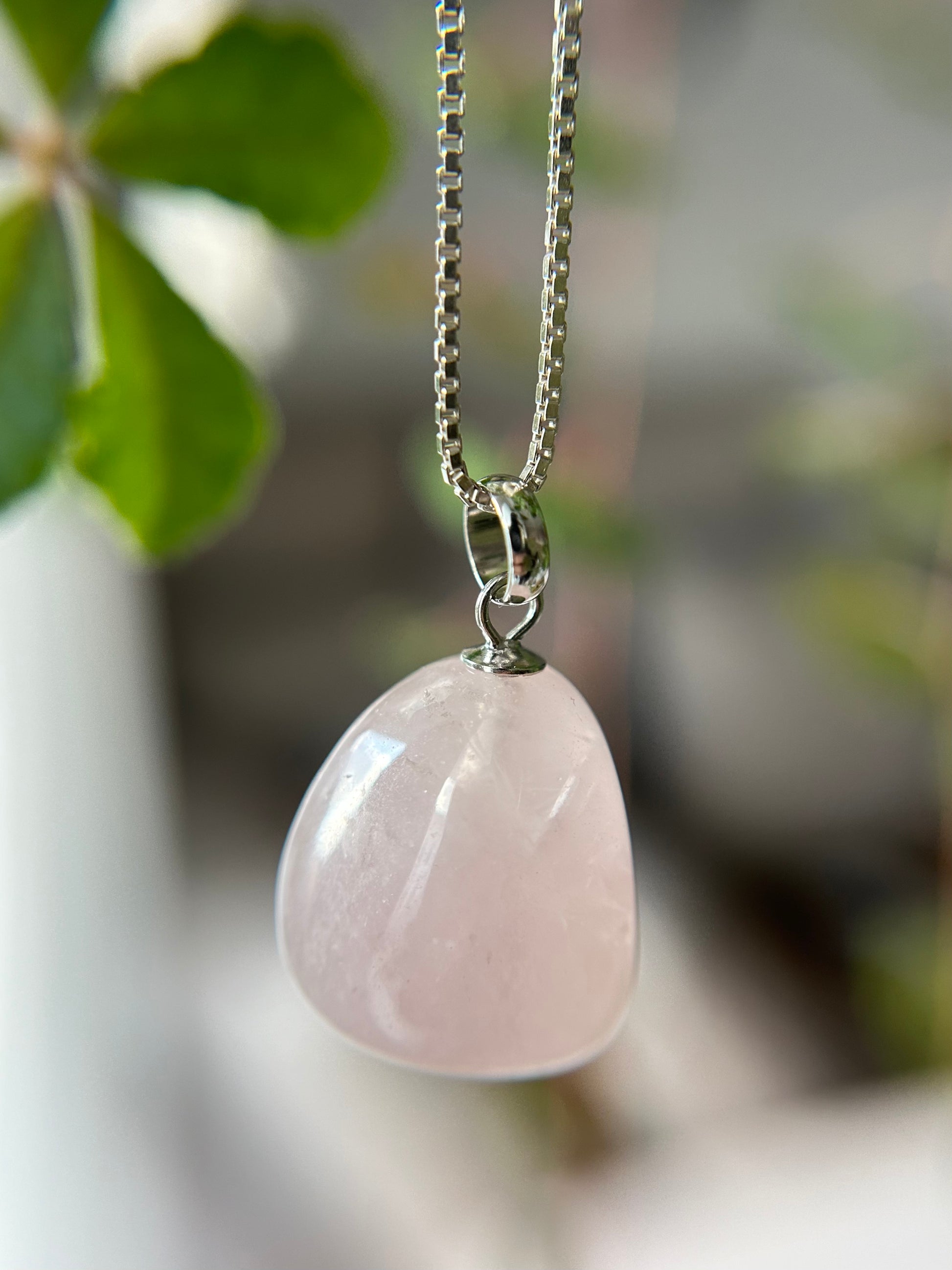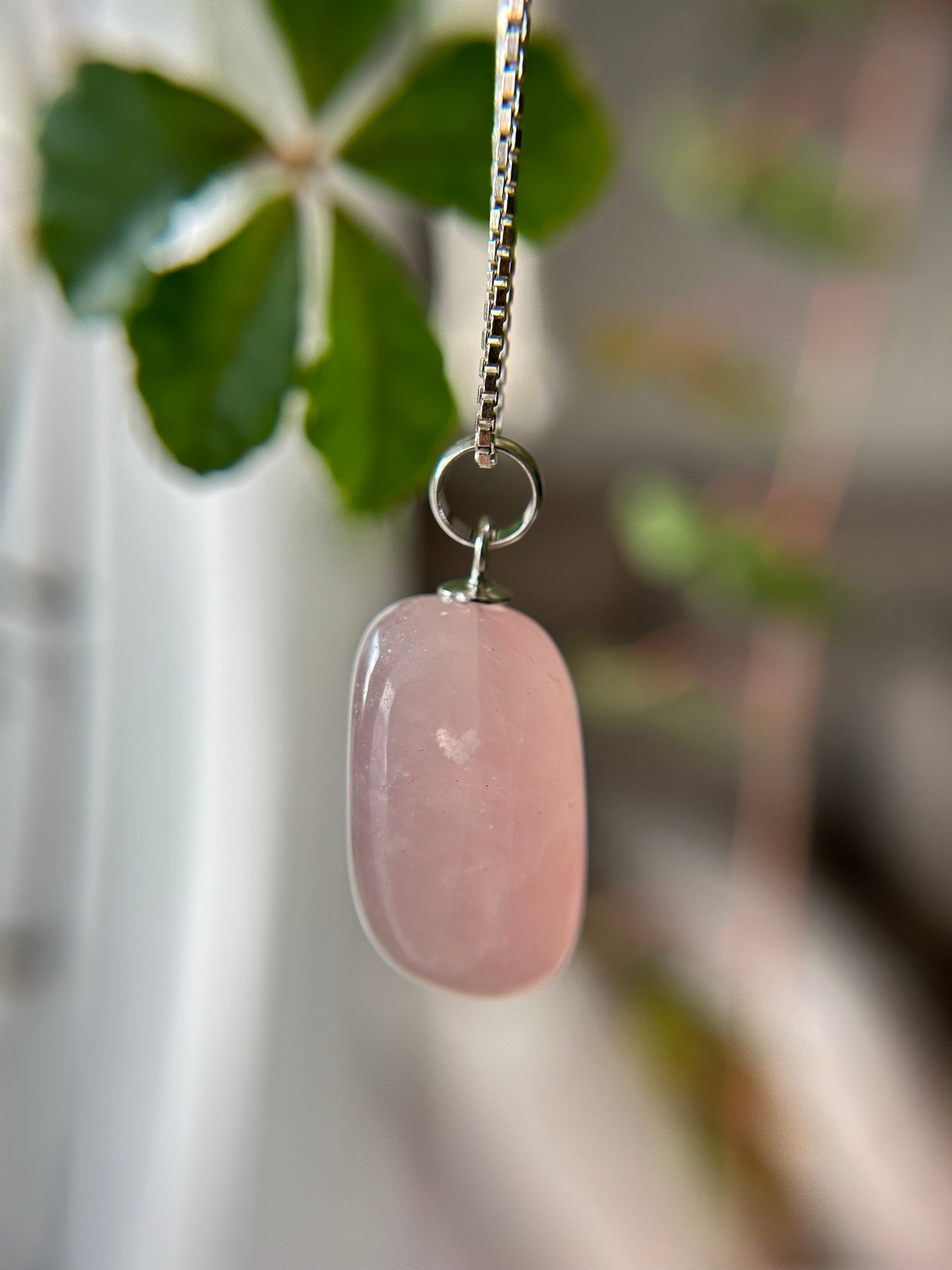 Material: Rosenquarz, Öse aus 925er Silber, rhodoniert