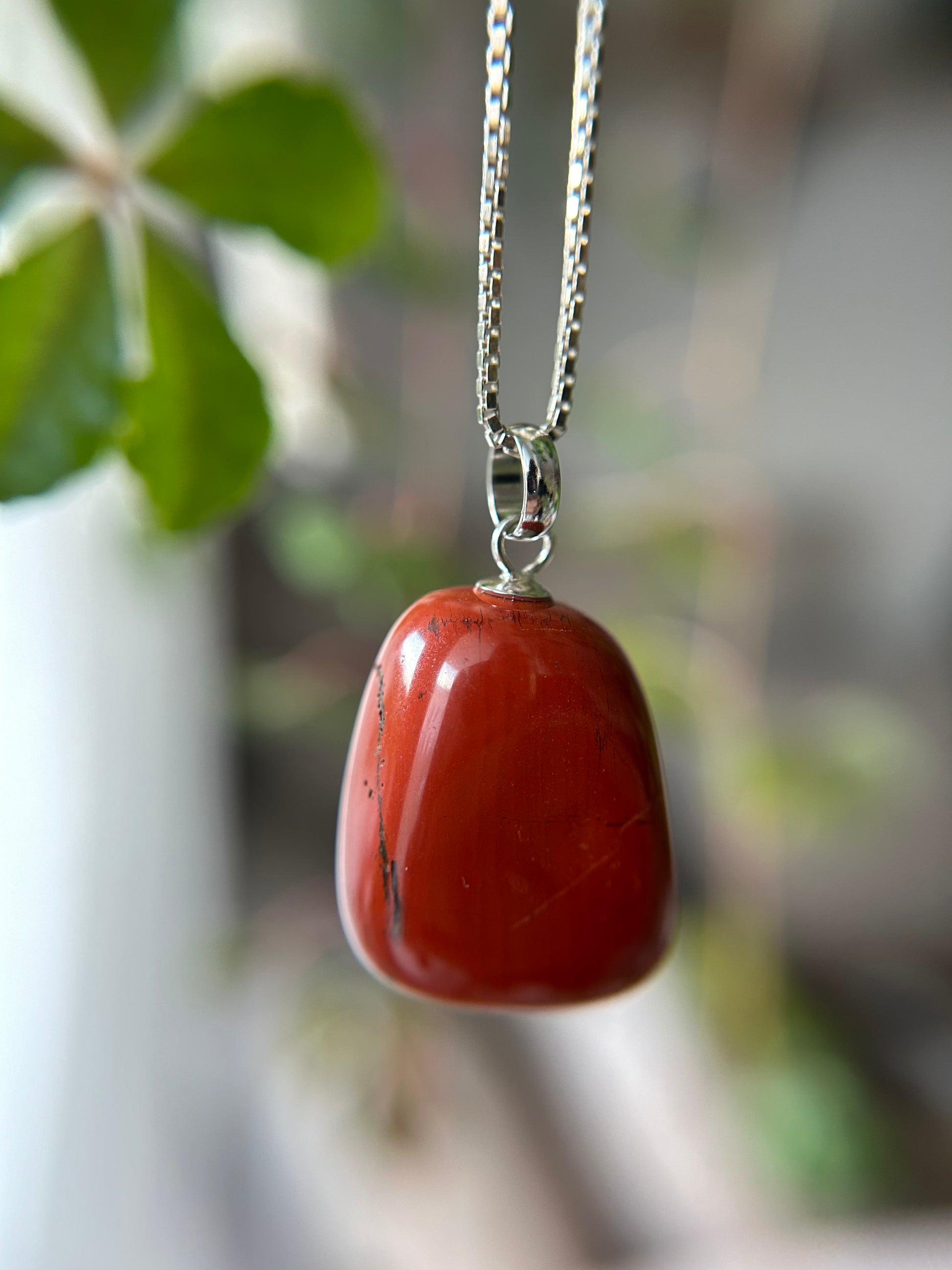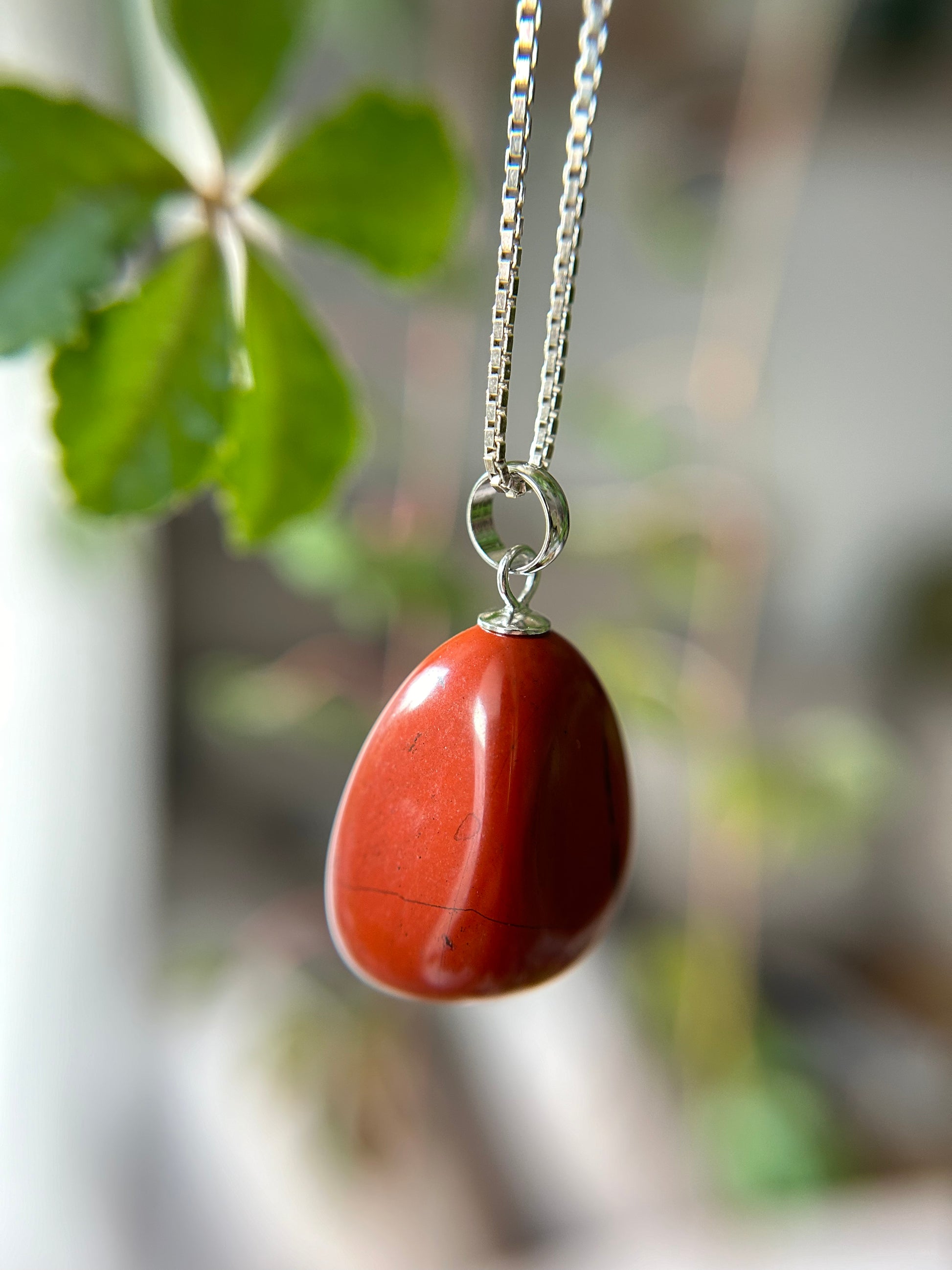Material: Roter Jaspis, Öse aus 925er Silber, rhodoniert
