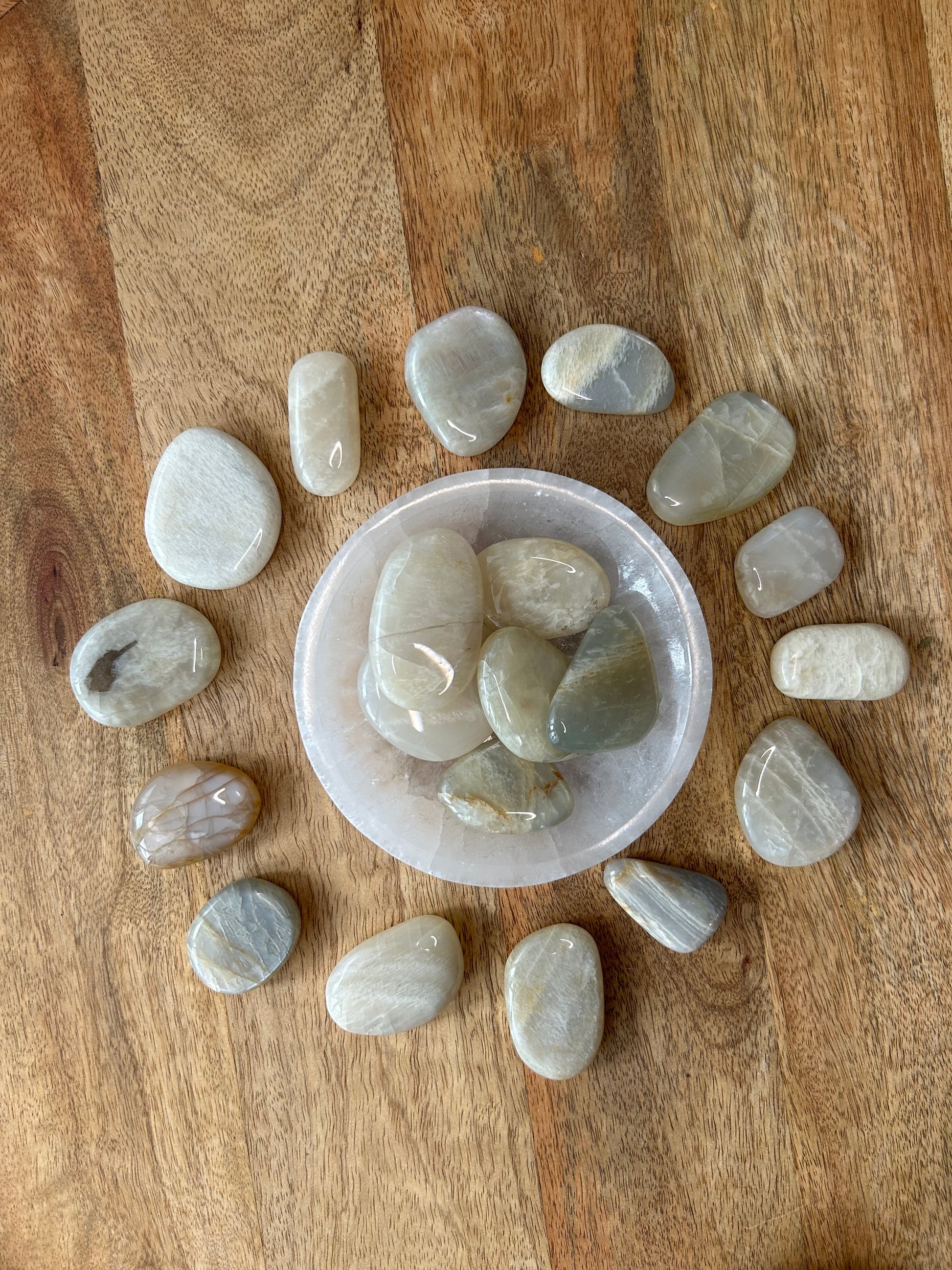 Der Mondstein ist bekannt für seine sanfte, feminine Energie und fördert die Intuition sowie emotionale Balance. Er hilft, die eigene innere Stimme zu stärken und unterstützt Dich dabei, Dich mit Deiner weiblichen Energie und natürlichen Kraft zu verbinden. Mondstein bringt Harmonie in Gefühle, wirkt beruhigend und schenkt tiefe Gelassenheit – ideal für Zeiten des Neubeginns oder persönlicher Transformation.