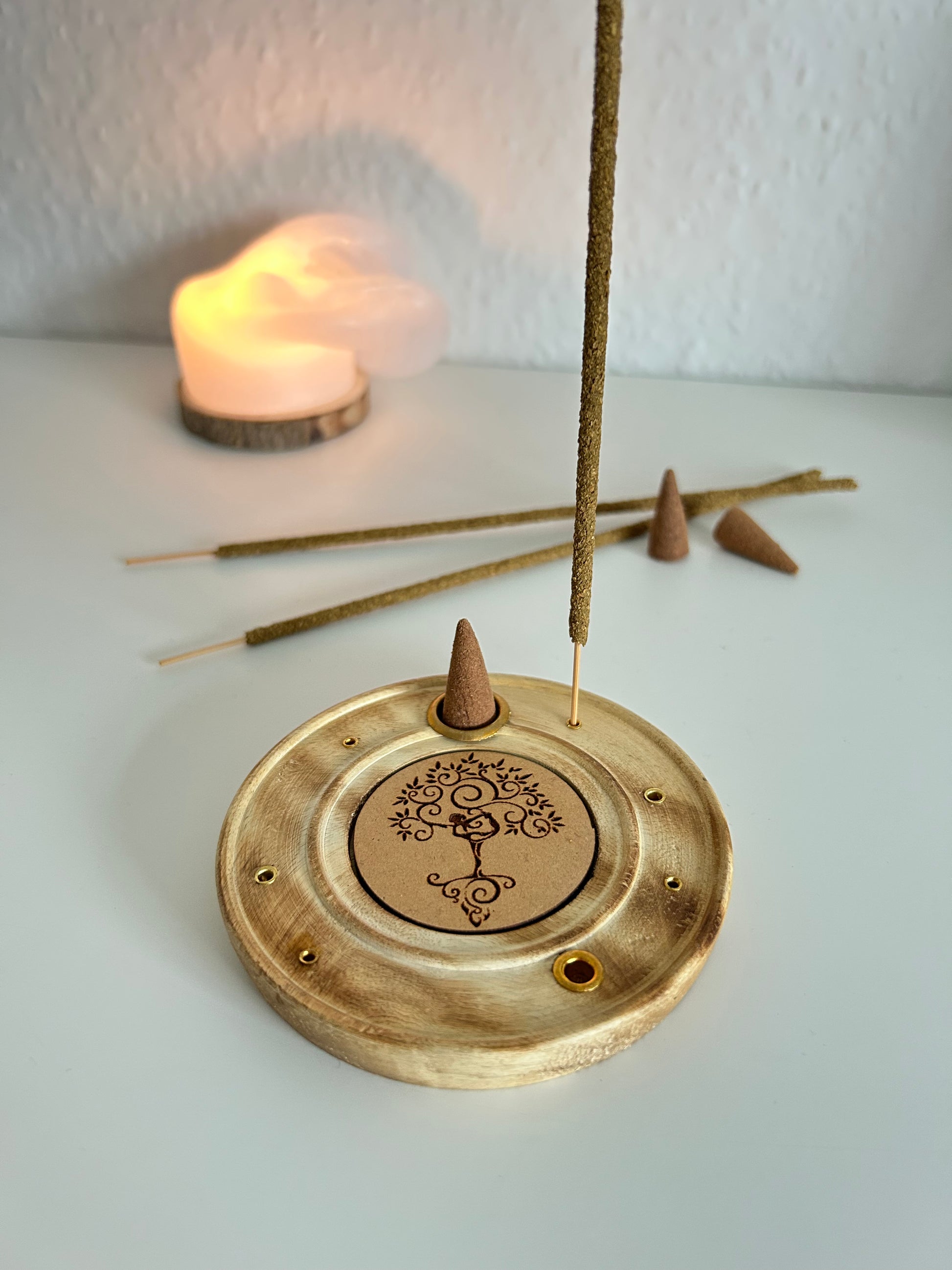 Dieser Räucherhalter ist für Räucherstäbchen und Räucherkegel in unterschiedlichen Größen geeignet.