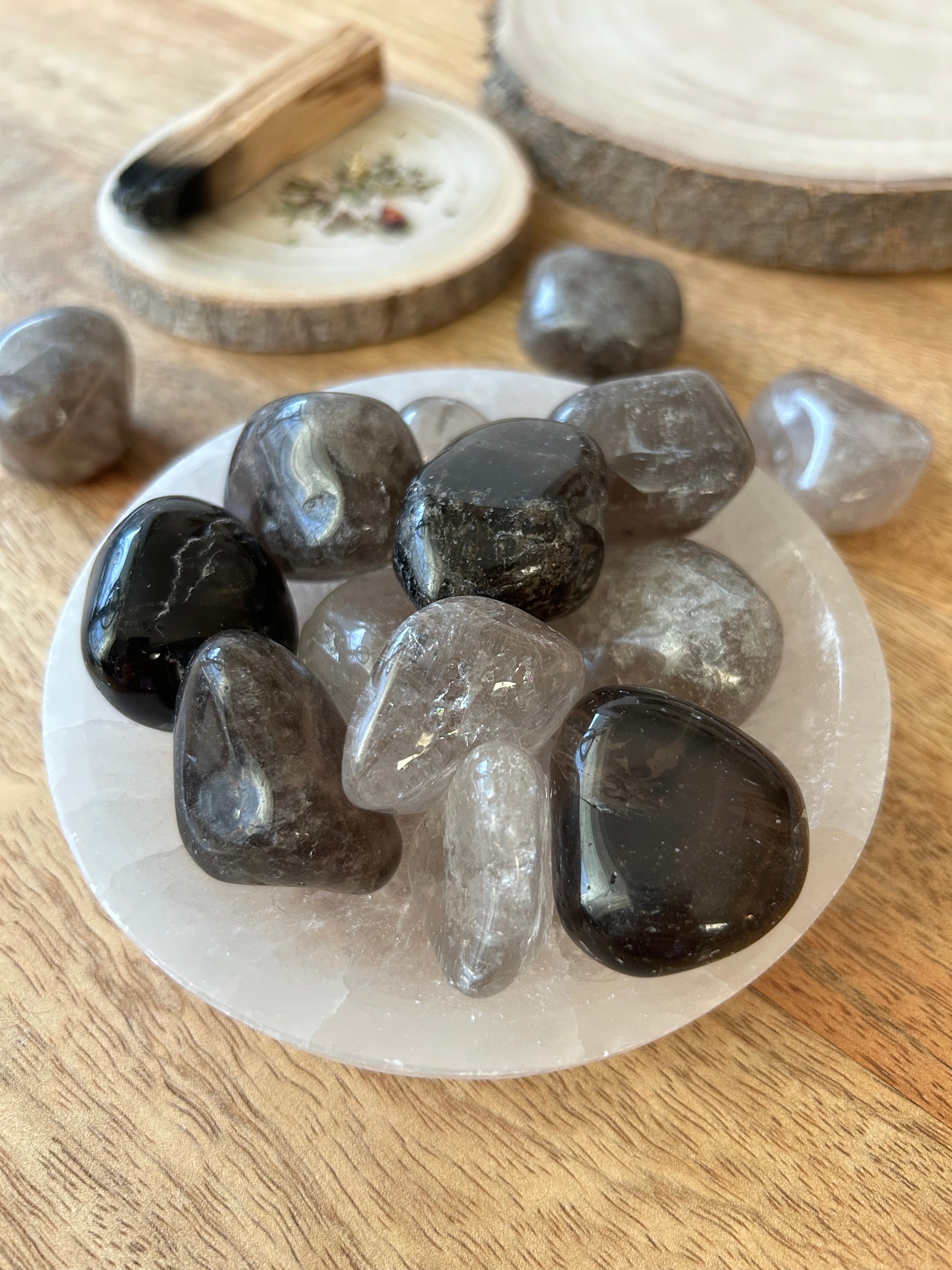Rauchquarz wirkt erdend und kann dabei helfen, negative Energien abzuleiten und die Aura zu reinigen. Er fördert innere Ruhe und Gelassenheit, unterstützt den Prozess der Selbstreflexion und hilft, emotionale Blockaden zu lösen. Mit seiner transformierenden Energie stärkt er das Vertrauen in den eigenen Weg und erleichtert Veränderungen im Leben, indem er Klarheit und Balance bringt.