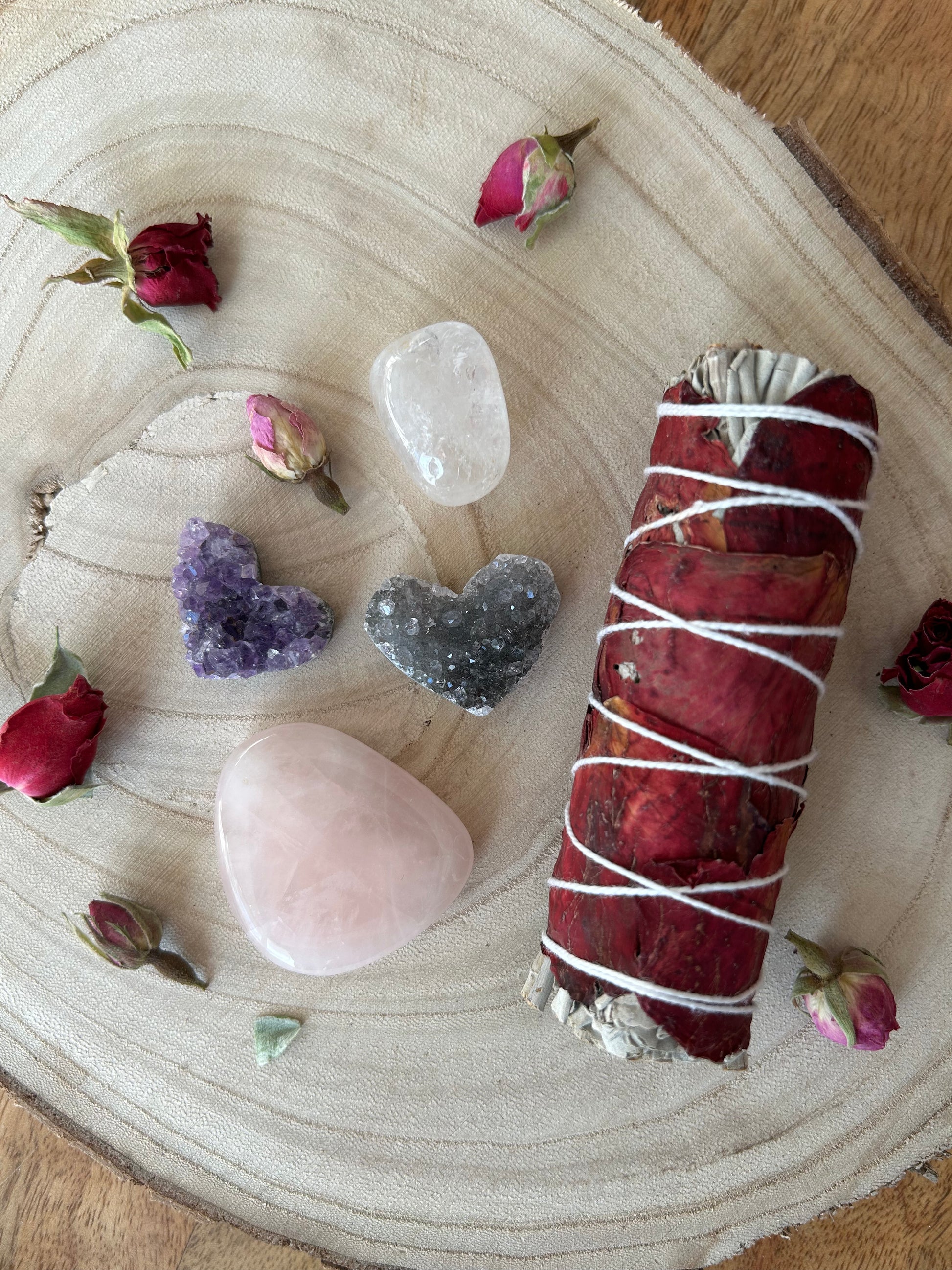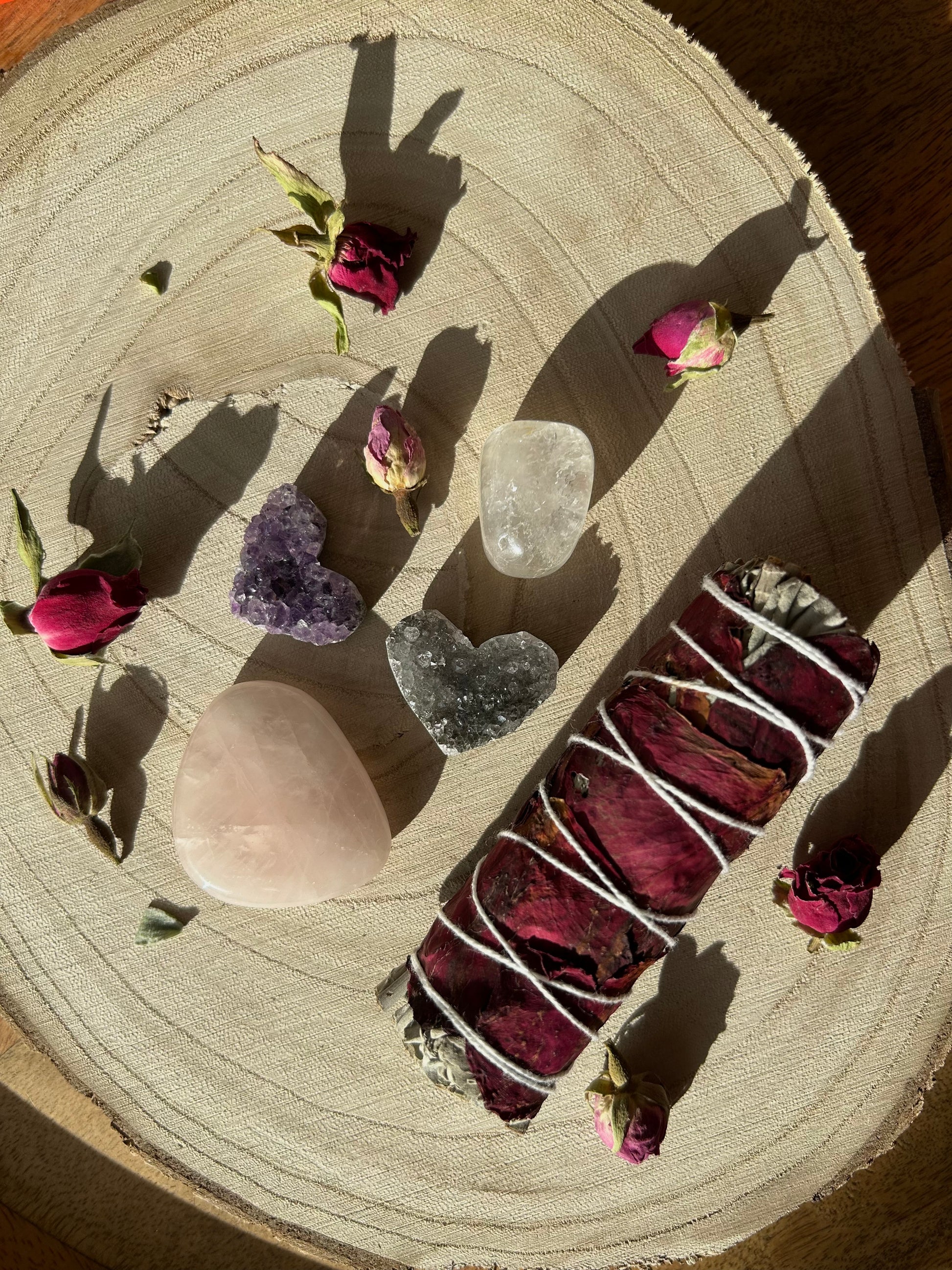 Räucherbündel (Rosenblätter & Weißer Salbei): Für romantische und liebevolle Energie.