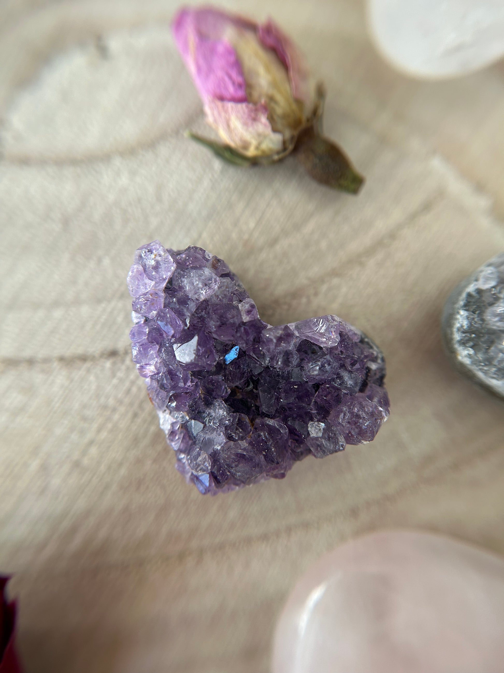 Amethyst Herzen (2 Stück): Unterstützen spirituelle Verbindung und Klarheit in Beziehungen.