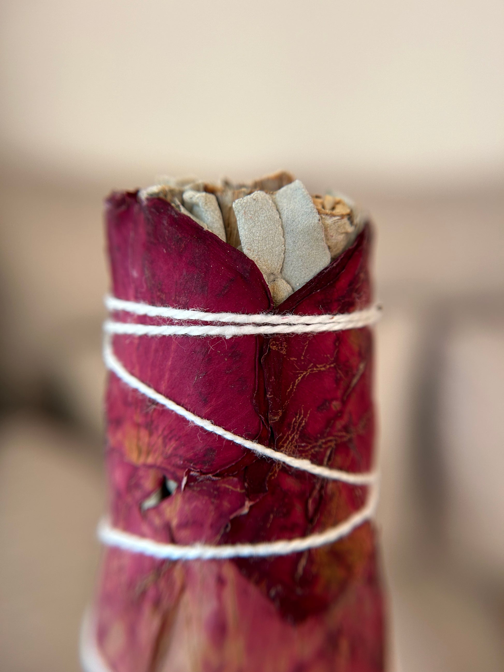 Unser Räucherbündel aus weißem Salbei und zarten Rosenblättern kombiniert die kraftvolle Reinigungskraft des weißen Salbeis mit der sanften, harmonisierenden Energie der Rose. Weißer Salbei ist bekannt für seine intensive klärende Wirkung und wird traditionell zur Reinigung von Räumen und Auren verwendet, während die Rosenblätter eine friedvolle, herzöffnende Energie verbreiten. Dieses Bündel ist ideal, um negative Energien loszulassen und gleichzeitig eine liebevolle und beruhigende Atmosphäre zu schaffen – perfekt für Rituale, Meditation oder den Start in einen neuen Lebensabschnitt.
